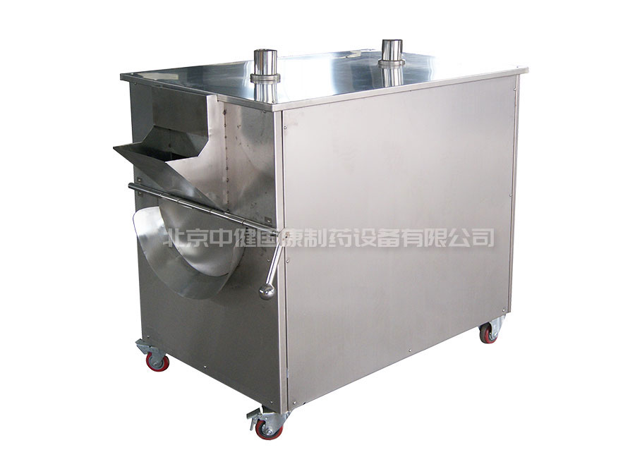 由炒藥滾筒、動(dòng)力系統(tǒng)及熱源等部件組成,操作時(shí),將藥材通過(guò)筒口加入,蓋如筒蓋板(為了散熱常在蓋板上留有散熱孔)。加熱后,開(kāi)動(dòng)滾筒,借動(dòng)力裝置滾筒做順時(shí)針?lè)较蜣D(zhuǎn)動(dòng)。使筒壁均勻受熱。當(dāng)藥材炒到規(guī)定程度時(shí),打開(kāi)蓋板,按動(dòng)是鈕,使?jié)L筒反向旋轉(zhuǎn),即可使藥材由出料口傾出。滾筒式炒藥機(jī)的溫度可根據(jù)不同的藥材及不同的炒制方法進(jìn)行調(diào)節(jié)。此設(shè)備應(yīng)用范圍較廣,以炒炭、炒焦、麩炒、土炒及燙制各種藥材常用。